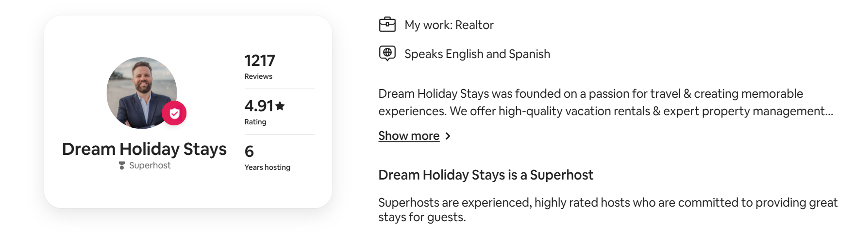 Competition for vacation homes is intense, but with Dream Holiday Stays, you have a winning edge. Our marketing expertise and toptier analytics ensure your property stands out on major booking platforms, maximizing your earning potential. We’re proud to consistently maintain Superhost status on Airbnb and Premier Host status on Vrbo, this ensures your properties is one of the first to be viewed when guests are booking their stay